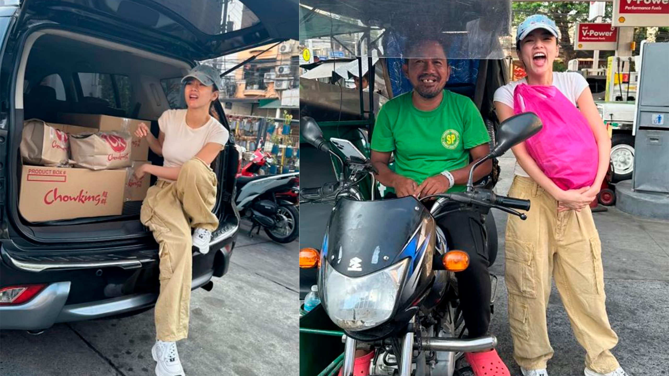Kim Chiu spotted at Shell Timog giving out free gasoline, groceries and food for her annual birthday charity.